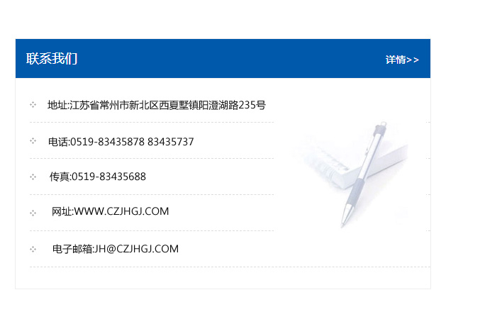 傳真:0519-83435688    郵編:213135    網址:WWW.czjhgj_com.cdlscm.com    電子郵箱:JH@czjhgj_com.cdlscm.com